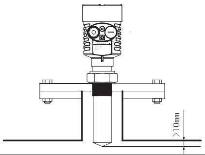 注:使用棒式防腐雷達物位計時,務必保證最高料位不能進入測量盲區(qū)(圖中D所示區(qū)域)。