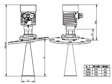 SKD59萬向喇叭雷達(dá)物位計(jì)外型尺寸圖