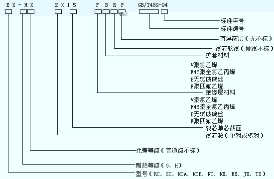 結構特征、絕緣層、護層材料、使用溫度 使用分類、允差等級、護層著色標志