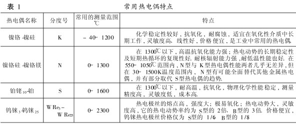 高溫測量中常用熱電偶及其特點如表1所示。在1250℃以下的場合,采用N型熱電偶測溫,其高溫穩(wěn)定性及使用壽命較K型熱電偶成倍提高,通常與鉑銠熱電偶相當(dāng)。因此,N型熱電偶的應(yīng)用范圍在逐步擴大。鎢錸3-鎢錸25熱電偶高溫測量時可測的溫度最高,但在氧化氣體中測量,鎢錸3-鎢錸25極易氧化,因此必須采取抗氧化措施。可將偶絲密封在保護套管中,并填以致密的填充料,填充料中有遇高溫產(chǎn)生還原性氣氛的粉體,外保護管是鉬基硅化鉬管。