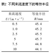 隨著流量計(jì)量行業(yè)的發(fā)展,插入式電磁流量計(jì)以其低成本、安裝維修方便等優(yōu)點(diǎn)廣泛應(yīng)用于大口徑管道流量的測量。盡管插入式電磁流量計(jì)測量屬于點(diǎn)測量,但用插入管道的探頭即傳感器上的兩個電極采集信號,探測到的是一定區(qū)域內(nèi)流體的信息。 現(xiàn)如今,絕大部分人采用流體力學(xué)方法(CFD)對流場進(jìn)行仿真研究,而其中使用最為廣泛的數(shù)值解法就是有限體積法,本文采用的仿真軟件FLU-ENT就是基于此。而很多人在運(yùn)用CFD方法進(jìn)行插入式電磁流量計(jì)流場仿真時,往往無法確定其在管道中的計(jì)算域,導(dǎo)致其信號模擬難以實(shí)現(xiàn)。針對這種情況,本文通過FLUENT軟件對管道內(nèi)流場進(jìn)行三維數(shù)值模擬,提出了信號作用范圍的概念和確定方法。 1 基本原理 1.1 信號作用范圍的定義 根據(jù)插入式電磁流量計(jì)的工作原理,距離電極越遠(yuǎn)的區(qū)域,其磁感應(yīng)強(qiáng)度越弱;當(dāng)遠(yuǎn)到一定距離時,該處流體切割磁感線所產(chǎn)生的電動勢弱到不會對流體檢測結(jié)果產(chǎn)生影響。所以,對于大口徑管道,插入式電磁流量計(jì)傳感器探頭電極能檢測到的流量信號實(shí)際上是被測管道內(nèi)傳感器探頭附近某一空間區(qū)域的電信號,而并非覆蓋整個管道。 所以,本文對信號作用范圍做了一明確定義。信號作用范圍是指電極附近的某一空間區(qū)域,該區(qū)域內(nèi)導(dǎo)電流體切割磁感線所產(chǎn)生的電動勢對流量檢測結(jié)果起決定性作用。 1.2 等效半徑R的定義 在流場中,信號越強(qiáng)則越容易被電極接收到,場內(nèi)每點(diǎn)產(chǎn)生的信號大小與流過該點(diǎn)的流速有關(guān),而插入式電磁流量計(jì)由于探頭的插入導(dǎo)致流場分布發(fā)生變化,故可知電極不是在其周圍等距離的采集有效信號,即實(shí)際的信號作用范圍是不規(guī)則的區(qū)域。為了方便研究,用下述方法定義等效信號范圍。一個在電極周圍的具有半徑R的球形區(qū)域VR,使它與實(shí)際信號作用范圍對信號產(chǎn)生的貢獻(xiàn)是等效的,即滿足式(1)。 (1) 式(1)中,Π為流體在流場中切割磁感線對信號產(chǎn)生貢獻(xiàn)的實(shí)際總體區(qū)域,VR為以電極為球心的區(qū)域,其半徑R定義為等效半徑,Φ(x,y,z)是流動空間中流體單位體積貢獻(xiàn)的信號。只要確定出等效半徑R,就能表征出等效信號作用范圍VR。 1.3 等效半徑R研究方法 根據(jù)體積流量的計(jì)算公式可知: QV=AU (2) 式(2)中U指的是截面A的面平均流速。而在儀表測量時實(shí)際檢測到的流速應(yīng)該是信號作用范圍內(nèi)的整體平均流速,通過標(biāo)準(zhǔn)裝置檢定得到儀表的轉(zhuǎn)換系數(shù)K,可以把信號作用范圍內(nèi)的整體平均流速轉(zhuǎn)換成電極所在位置處管道最小橫截面(簡稱最小截面)的面平均流速,從而計(jì)算出流量值。故在仿真時可以把信號作用范圍內(nèi)的平均流速代替最小截面的平均流速,通過這個原理可以對信號作用范圍進(jìn)行求解和驗(yàn)證。 1.4 等效半徑R分析步驟 關(guān)于等效半徑R的確定,以FLUENT軟件對插入探頭的大口徑管道進(jìn)行數(shù)值模擬。步驟為:①求得某一來流速度U下,不同區(qū)域半徑r與該半徑球形區(qū)域范圍內(nèi)平均流速之間的關(guān)系;②根據(jù)連續(xù)性方程求得最小截面的理論平均流速;③利用插值方法確定該來流速度下信號作用范圍的等效半徑R;④改變來流速度重復(fù)此模擬實(shí)驗(yàn)。 2 信號作用范圍的確定方法 2.1 確定計(jì)算域 為了保證網(wǎng)格質(zhì)量,選擇工程上使用十分廣泛、結(jié)構(gòu)較為簡單的圓柱二電極探頭作為仿真對象,計(jì)算域如圖1所示。在保證前后直管段的基礎(chǔ)上,設(shè)定常溫常壓下水為流動介質(zhì),入口邊界條件為速度入口,出口邊界條件為壓力出口,選擇標(biāo)準(zhǔn)k-ε模型為湍流模型,其經(jīng)驗(yàn)常數(shù)C1ε、C2ε、C3ε分別取1.44、1.92、0.09,湍動能和耗散率分別取1.0和1.3。 根據(jù)信號作用范圍概念可知,只要探頭能夠檢測到流量信號,表明該處的流動一定在磁場區(qū)域范圍內(nèi),則計(jì)算域內(nèi)的平均速度為: (3) 式(3)中Vr為計(jì)算區(qū)域,u(x,y,z)為速度函數(shù)。 圖1 插入式電磁流量計(jì)計(jì)算域 2.2 最小截面理論流速的求解 所研究的背景是插入式電磁流量計(jì)用于測量大口徑管道的流量,因此,所采用的管道模型是大口徑管道,尺寸如下:管道內(nèi)徑為400mm,探頭半徑為32mm,電極半徑為5mm,探頭的插入深度為120mm。 由連續(xù)性方程可得: (4) 式(4)中U為實(shí)際來流速度,A1為管道截面積, 為最小截面理論流速,A2為最小截面積。 用GAMBIT軟件建立模型,可直接得出A2=117961.70mm2。取來流速度在0.5~10m/s范圍內(nèi)的6速度點(diǎn),則可以根據(jù)公式(4)求出不同來流速度下流過最小截面的理論流速。 2.3 計(jì)算域內(nèi)的平均流速和計(jì)算域半徑之間的關(guān)系 取計(jì)算域半徑在10~80mm的范圍內(nèi),通過GAMBIT軟件分別建立模型,再由FLUENT軟件分別進(jìn)行仿真,得出在不同半徑的計(jì)算域內(nèi)所對應(yīng)的體積加權(quán)平均流速,如表1所示。 表1 不同計(jì)算域半徑下的平均流速 從表1數(shù)據(jù)可以看出,隨著計(jì)算域半徑的增大,計(jì)算域