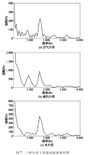 蒸汽作為一種重要的二次清潔能源,在電廠、石油化工、食品、機械加工等工業生產領域和人民的日常生活中占據了越來越重要的地位。為了提高蒸汽的計量水平,標準孔板、噴嘴以及渦街流量計等多種類型的蒸汽儀表,而在眾多類型蒸汽儀表中,渦街流量計以其結構簡單、測量范圍寬、壓損小、測量時無可動件等優點在蒸汽計量中得到快速的推廣和使用。 1 渦街流量計 渦街流量計 ( 又稱旋渦流量計) 是根據 “卡門渦街”原理研制成的流體振蕩式流量測量儀表。所謂 “卡門渦街”現象就是在測量管道流動的流體中插入一根 ( 或多根) 迎流面為非流線型的旋渦發生體,當雷諾數達到一定值時,從旋渦發生體下游兩側交替地分離釋放出兩串規則的交錯排列的旋渦,這種旋渦稱為卡門渦街。在一定雷諾數范圍內,旋渦的分離頻率與旋渦發生體的幾何尺寸、管道的幾何尺寸有關,旋渦的頻率正比于管道流體流量,并可由各種型式的傳感器檢出,渦街流量計工作原理如圖 1 所示。 卡門渦街頻率計算公式為: 式中: f 為旋渦頻率; Sr為斯特勞哈爾數; m 為旋渦發生體兩側弓形面積與管道橫截面面積之比,不可壓縮流體中,由于流體密度 ρ 不變,由連續性方程可得到 m = U/U1。 不同介質對渦街流量計性能的影響最終體現在儀表系數的差異上,所以本文使用 Fluent 軟件建立渦街流量計的幾何模型,然后對不同介質下的流場進行仿真分析,并仿真得到不同介質下的儀表系數,最終通過實驗驗證得到空氣和水作為替代介質導致的與蒸汽實流標定得到的儀表系的差異。 2 仿真模型與條件的設定 2. 1 仿真模型 選擇 DN100 口徑的渦街流量計進行研究,利用 Gambit 軟件建立渦街流量計幾何模型并劃分網格,渦街流量計發生體橫截面網格如圖 2 所示。 為了提高計算效率,渦街發生體處重點加密,其他區域適當的稀疏。從圖 2 可以看出,渦街發生體所處流場網格均勻加密。通過加密畫法,靠近渦街發生體的橫截面網格較密,遠離渦街發生體而靠近管壁的網格較稀疏。 2. 2 仿真條件設定 仿真選擇三種流體材質,分別為空氣和蒸汽兩種可壓縮流體以及不可壓縮的水,在 Fluent 中空氣和蒸汽材質通過設定氣體的密度選項來實現。對于不可壓縮流體選擇的密度為常數; 空氣介質選擇默認密度 1. 225 kg/m3,其密度設定為理想氣體,在迭代計算的過程中,根據氣體狀態方程壓強的變化修正流體的密度; 蒸汽介質的密度根據IF - 97 公式,利用 UDF 編程設置。 仿真模型選擇 RNG k - ε 雙方程湍流模型,該模型可以很好地處理高應變率以及流線彎曲程度較大的流體流動,非常適合具有旋渦脫落現象的渦街流場仿真[8]。 3 流場仿真分析 根據公式 ( 1) 可知,影響渦街流量計旋渦頻率的是發生體兩側的流速 U1和發生體的結構,由于發生體結構尺寸是固定的,因此頻率只與 U1相關,需要觀測在相同入口流速 U 的條件下 U1變化來得到頻率的變化,而速度的變化必然會導致流體密度的變化,因此可觀測發生體兩側的密度云圖,來判斷可壓縮性對渦街流量計流速 U1的影響,通過仿真得到如圖 3 ( a) 所示的不可壓縮流體發生體兩側的密度云圖和如圖 3 ( b) 所示的可壓縮流體發生體兩側的密度云圖。 由圖 3 可以看出,不可壓縮流體的密度在仿真過程中沒有發生變化,可壓縮流體的密度發生了變化,必然會導致兩側速度 U1的變化?蓧嚎s流體經過發生體后密度變小會導致 U1變大。 根據圖 3 得到的結論,對渦街流量計進行蒸汽、空氣和水三種介質下的軟件仿真,設置三種介質的入口流速均為 50 m/s,取渦街發生體迎流面側棱中點與管壁連線,如圖 2 中線段 ab所示。取該線上的速度值,將蒸汽、空氣和水三種介質下的速度曲線進行比較,結果如圖 4所示。 從圖 4 中可以看出,在靠近渦街發生體的位置,可壓縮流體流速明顯大于不可壓縮流體流速,且空氣的流速要大于蒸汽介質的流速。因此空氣介質受氣體可壓縮性的影響較大。 渦街流量計的計量性能最終反映到儀表系數上,渦街流量計兩側的旋渦頻率決定了儀表系數的大小,圖 5 為仿真得到的渦街流量計渦流流場靜壓云圖。從圖中可以看出兩個明顯的脫落旋渦。圖中 A 區域靜壓大,B 區域靜壓小。靜壓最小的位置是 C 處,也就是脫落旋渦的渦心位置。檢測渦街發生體下游 1D 處的靜壓變化得到如圖 6 所示的靜壓變化圖。 對圖 6 中靜壓數值進行快速傅立葉變換,得到如圖 7 所示的三種介質下的旋渦脫落頻率圖。 通過讀取圖 7 三種介質旋渦脫落頻率圖最高 點的頻率,可以得到空氣介質的旋渦脫落頻率為1 595 Hz,蒸汽介質的旋渦脫落頻率為 1 579 Hz,水介質的旋渦脫落頻率為1 559 Hz。代入公式 ( 1)可以發現,渦街流量計在相同管道直徑相同入口速度的情況下在水介質中得到的儀表系數最小、蒸汽次之、空氣最大。說明空氣受氣體介質的可壓縮性影響大,在發生體兩側的密度變化率較蒸汽要大。 4 實驗驗證 為驗證仿真分析得到的結論,利用負壓法音速噴嘴氣體流量計量標準裝置、蒸汽實流計量標準裝置和水流量計量標準裝置對該結構類型的渦街流量計進行三種介質的實驗研究,各測試條件參數如表 1 所示。 在上述實驗條件下得到三種標準計量裝置的儀表系數,實驗結果如圖 8 所示。 由圖 8 可看出,在實驗過程中,空氣與水的儀表系數與仿真分析基本相符,但蒸汽介質的儀表系數要小,這主要是因為蒸汽介質的高溫