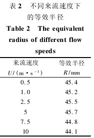為了得到不同來(lái)流速度下的等效半徑,利用MATLAB 對(duì)各組數(shù)據(jù)進(jìn)行相應(yīng)理論流速的插值運(yùn)算,得到如表 2 所示的數(shù)據(jù)。