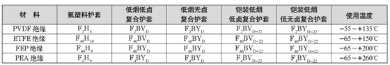 注:表中代號PVDF-聚偏二氟乙烯,ETFE-乙烯四氟乙烯共聚物,F(xiàn)EP-聚全氟乙丙烯