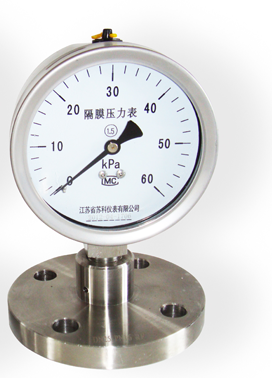 YM系列隔膜壓力表適用于測量具腐蝕性、高粘度、易結晶、易凝固,溫度較高的液體、氣體或顆粒狀固體介質的壓力以及必須避免測量介質直接進入隔膜壓力表和防止沉淀物積累且易清洗的場合。隔膜壓力表主要用于石油、化工、化纖、染化、制藥、制堿食品等工業部門。 |